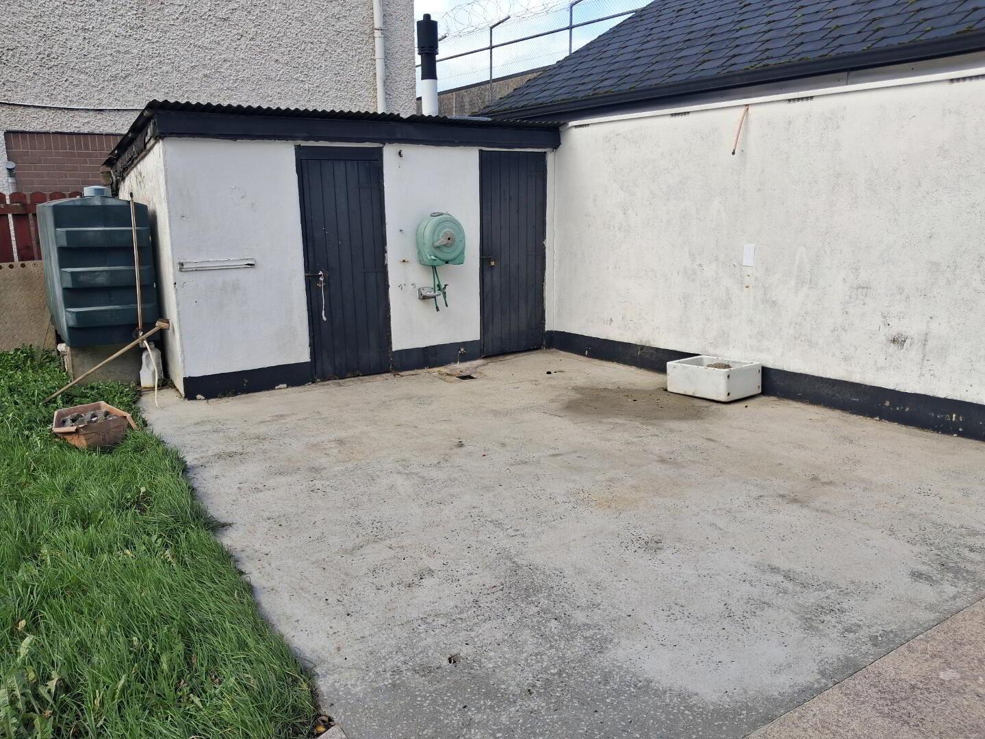 2 outside sheds, one containing oil burner; rear paved parking area, section of garage to rear, outside tap, enclosed front paved area.