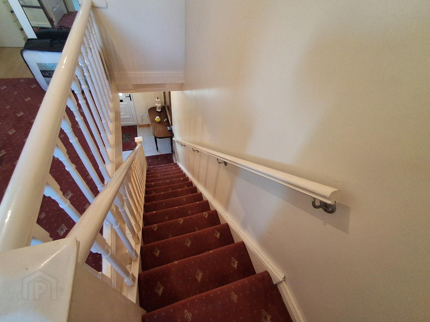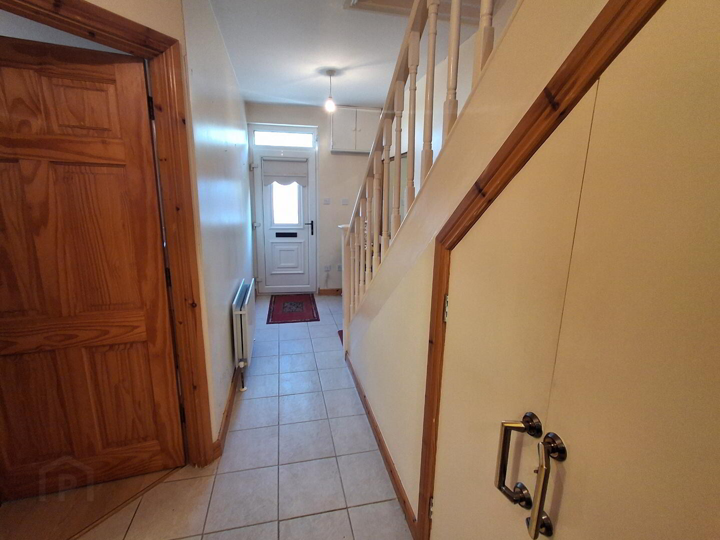 Entrance hall: 4.7M X 1.75M Hard tile floor, contains stairwell, understairs storage.