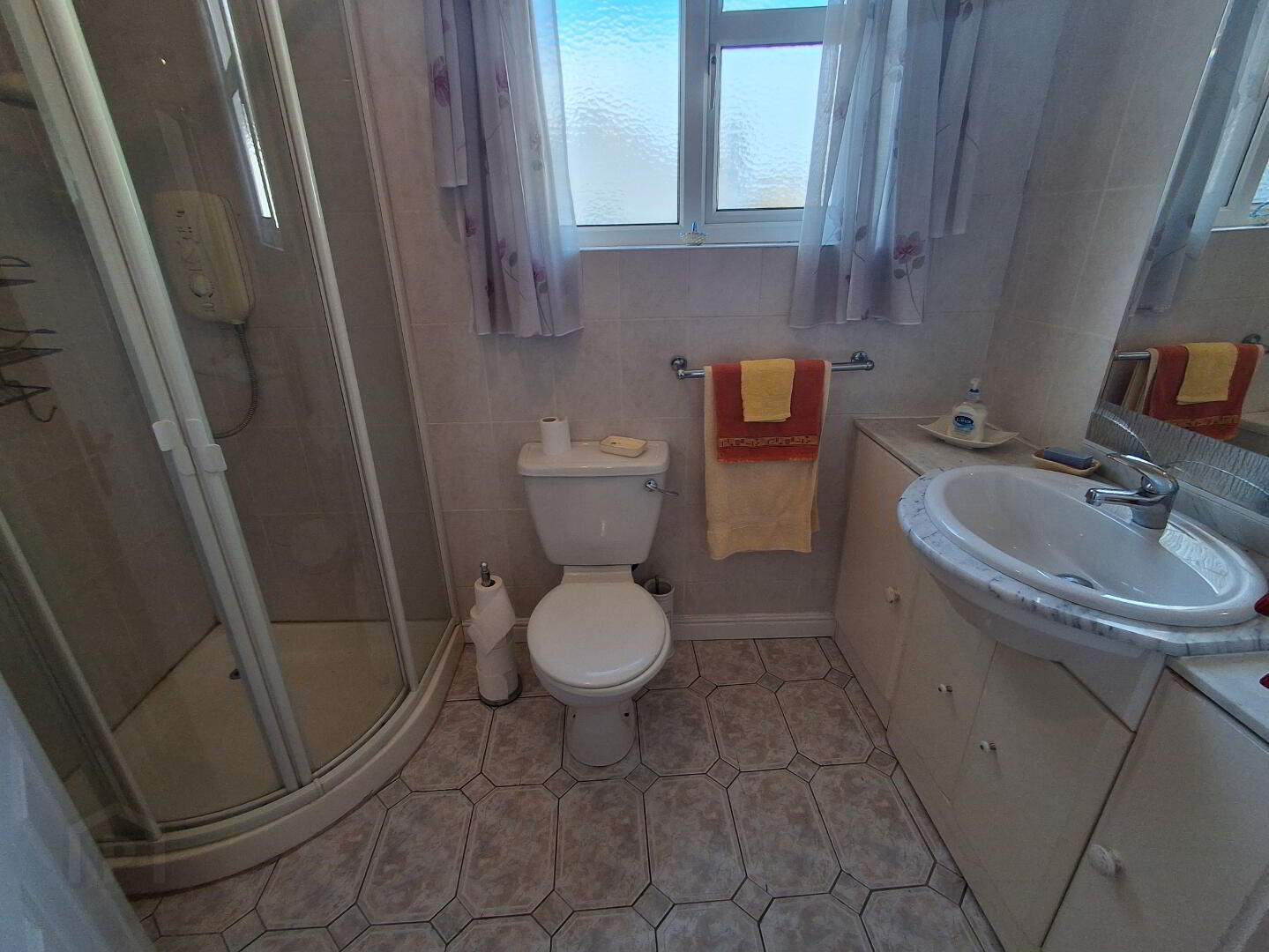 Bathroom : 2.6M X 1.48M Wc, wash hand basin and 'Mira Sport' shower in self contained cubicle, Hard tile floor- Tiled floor to ceiling.