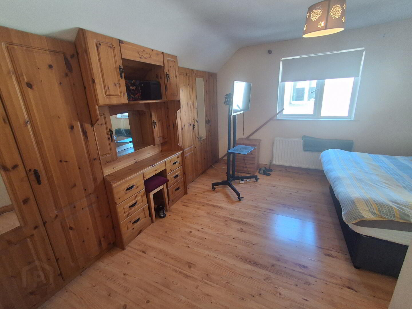 4.7M X 3.59M Wooden floor, fitted vanity unit, under eaves storage, gable window.