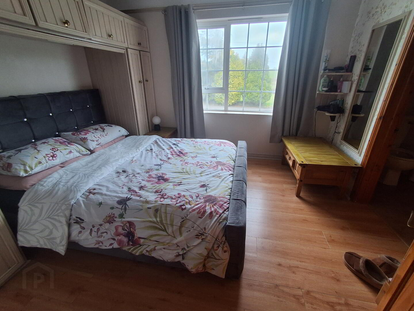 Master bedroom: 3.4m X 3.04m Wooden floor, fitted wardrobes above and to sides of headboard creating ample storage.